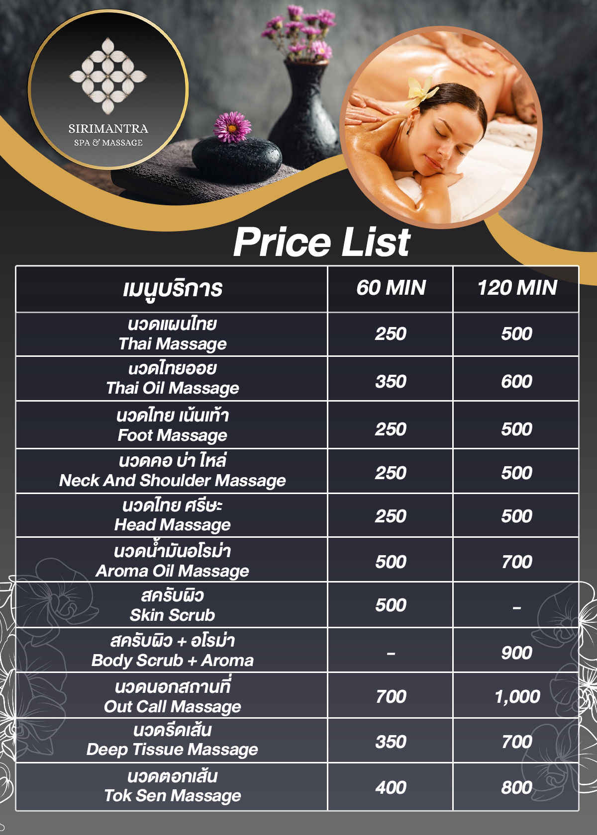 นวดเพื่อสุขภาพสระบุรีศิริมันตรา ราคาและบริการ Sirimantra Massage ติดต่อเรา 095-761-5183 sirimantra99 ศิริมันตราสาขาสระบุรี